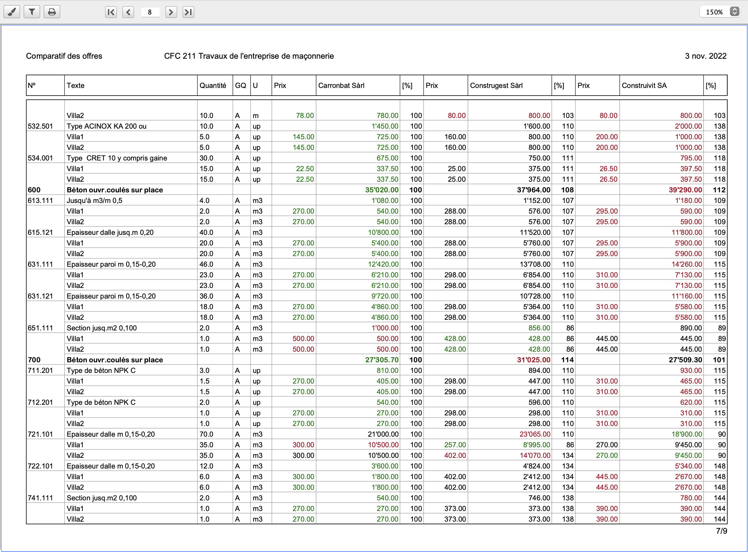 Les caractéristiques importantes suivantes distinguent la comparaison des prix dans DELTA soumissions: